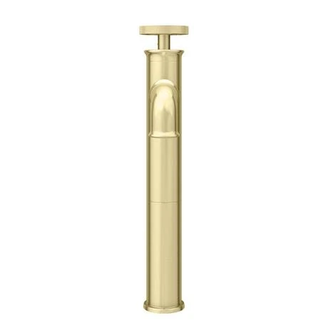The stylish Arezzo industrial-style brushed brass high rise mono basin mixer tap is perfect for adding a striking finishing touch to your contemporary bathroom. Crafted to the highest standards, this stunning deck mounted tap features a stripped-down aesthetic with a round knurled textured tap head, perfect for creating an eye catching industrial look in your bathroom. Plated in a brushed brass finish which is highly resistant to corrosion. Designed to be used with a counter top basin or bowl.Â