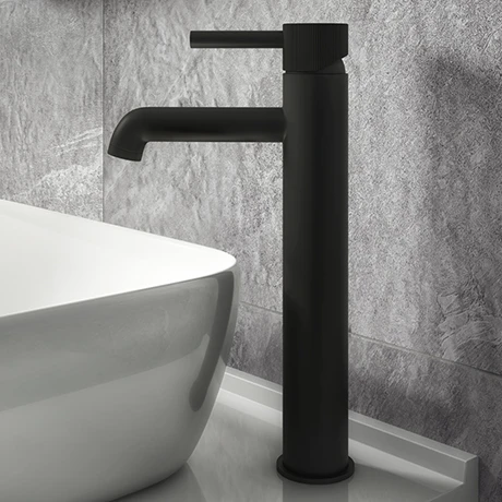Add a splash of modernist style to your bathroom with our Arezzo fluted matt black range, features a decorative fluted texture around the sides of the single lever tap head. The 301mm tall basin mixer is suitable for use with counter top basins and bowls. The minimalist profile of this high rise fluted round mixer tap will give your bathroom a sleek look. Pair it with the Arezzo Matt Black Round Counter Top Basin for a coordinated appearance.Â