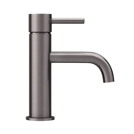 This brushed gunmetal grey deck mounted monobloc basin tap is an ideal choice to bring a touch of designer chic to your bathroom. Tap features a curved, round spout and also comes with a matching single-lever tap head provides efficient control of both temperature and flow. Crafted from solid brass, this gunmetal grey bathroom tap has a high-quality build and has been designed for use with 1 tap hole basins. Perfect for creating a clean minimalist look.