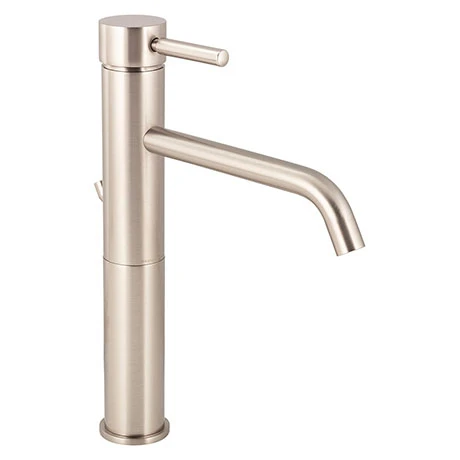 The M-Line Brushed Nickel Tall Basin Mixer is perfect for creating a clean minimalist look and is best suited with a vessel basin. Made from brass with a trendy brushed nickel finish, the range is characterised by it’s curved round spout and single lever handle. Comes supplied with a pop-up waste.
