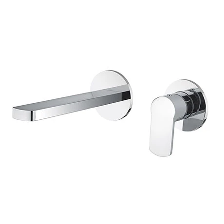 The Teatro Chrome Wall Mounted 2-Hole Basin Mixer adds sophistication and style to your bathroom. Made from brass with a classic chrome finish, the range is characterised by it’s stylish flat spout and sleek minimalist lever handles.