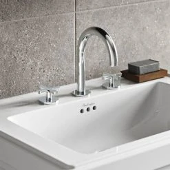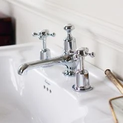 The Burlington Claremont tap range with black ceramic indices is the perfect complement to Burlington’s Jet Black range. These basin taps are constructed from brass and beautifully finished in chrome. It features traditional screw down valves and come supplied as a pair.