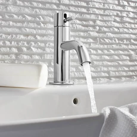 The Design Mini Monobloc Basin Mixer from Crosswater combines a stylish lever design together with ease of use. This tap features a sleek, round body, complemented by a matching round lever handle incorporating ceramic disc valve technology. Suitable for low pressure systems of 0.2 bar and above. Manufactured from solid brass and comes with a 15 year guarantee from Crosswater.Â