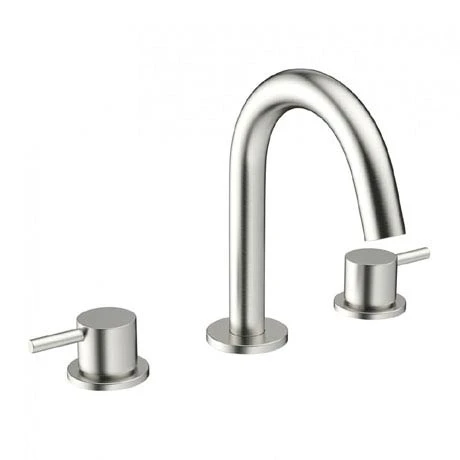 The MPRO Collection delivers on function, style and quality for a look that encapsulates a modern elegance that’s second to none. This stunning deck mounted 3 hole basin mixer features a twin lever design with a ceramic disc cartridge and is fitted with a water flow regulator as standard that makes it water efficient. Manufactured from brass and finished in an exquisite brushed stainless steel effect finish.