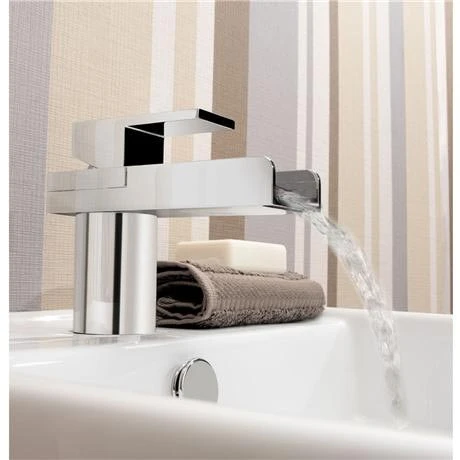 Featuring the Water Square tap range from Crosswater. This tap comes in a chrome plated finish and has a rounded body and a rectangular open spout that produces a stunning waterfall effect. The single lever design allows for ease of operation and control of the flow of both hot and cold water.Â