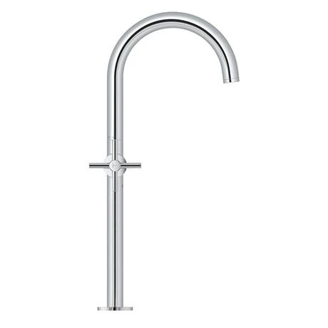 The Grohe Atrio basin mixer is a premium, high performance tap ideal for those wanting to make a style stamement. It features a twin crosshead handle design offering precise control and an elegant extra-high spout that swivels 150° for extra user comfort. Crafted from high quality materials and finished in GROHE StarLight chrome coating that is scratch resistant and easy to clean. Comes supplied with a click clack waste which simply opens and closes with an effortless push.