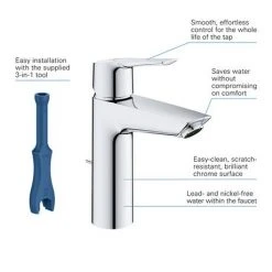 The Grohe Bau Cosmopolitan E Infra-Red Electronic Basin Mixer features a mixing device and adjustable temperature limiter and an infrared sensor for bi-directional communication for monitoring, configuration and servicing. Being sensor controlled it provides a hygienic touch free system and is a great addition to any modern bathroom. The mixer is powered by a 6V lithium battery that will last up to 7 years. Manufactured from high grade ABS and finished in GROHE StarLight chrome coating that is scratch resistant and easy to clean.
