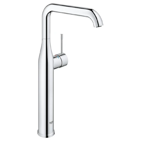 Elegant and ultra-modern, the Grohe Essence Basin Mixer works well with freestanding basins. Its single tap hole mixer design means you can adjust water temperature with ease, and the lever handle is fitted with a Grohe SilkMove® cartridge for smooth and precise turning. Grohe’s EcoJoyâ„¢ technology is also included, cutting water use by almost half without compromising flow. The polished chrome on this extra high spout makes for a striking finish.