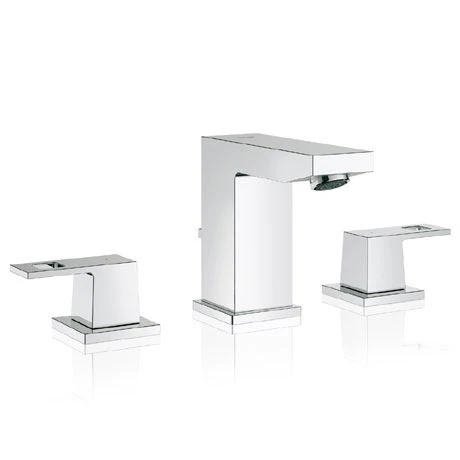 With a unique separate levers and spout design, the Eurocube 3-Hole Basin Mixer will be a highlight in your bathroom. This stylish tap features separate hot and cold water levers, and an integrated pop-up rod to open and close the waste. With GROHE QuickFix® Plus you will have this basin mixer installed in no time without any hassle. Crafted from high quality materials and finished in a special chrome coating that is scratch resistant and easy to clean. All Grohe bathroom taps come with a 5 year guarantee.