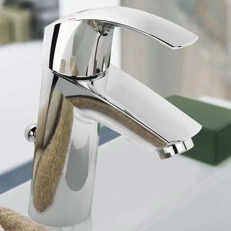 The Eurosmart Mono Basin Mixer features a modern design with state-of-the-art features and comes supplied with an integrated pop-up waste for ease of use. GROHE SilkMove® ES technology saves energy by ensuring cold water only flows at mid-lever position. The GROHE EcoJoy® system is a unique water saving function that can reduce consumption by up to 50%. Crafted from high quality materials and finished in a special chrome coating that is scratch resistant and easy to clean. All Grohe bathroom taps come with a 5 year guarantee.