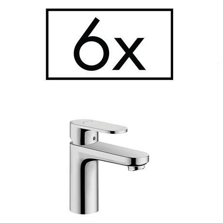A pack of 6 x basin mixer taps for large or commercial projects. The harmonious design of Vernis Blend, with its gentle curves, has a modern and elegant look. This single lever basin mixer offers an economical way of adding designer elegance to your bathroom. AirPower technology adds generous amounts of air to the water, creating a soft, splash-free spray while EcoSmart technology reduces the flow rate to save water and energy.
