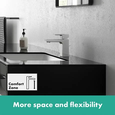 The geometric Vernis Shape variant, with its precise edges, stands for a visually striking look. This single lever basin mixer offers an economical way of adding designer elegance to your bathroom. AirPower technology adds generous amounts of air to the water, creating a soft, splash-free spray while EcoSmart technology reduces the flow rate to save water and energy.