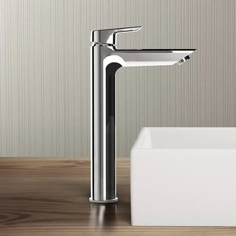 The Tesi range brings a touch of elegance into any bathroom, the collection features geometric lines combining round and angular shapes. This Single Lever Tall Basin Mixer comes fitted with an eco 5 lpm flow regulator and a temperature limit stop to prevent scalding. Comes supplied with flexible tails.