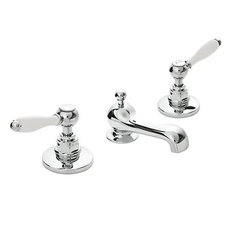 Create your own unique style statement with the Imperial Radcliffe Chrome 3-Hole Basin Mixer with White Levers. Manufactured from brass and beautifully finished in gleaming chrome, the tap features white ceramic lever handles and comes supplied with a matching pop-up waste.