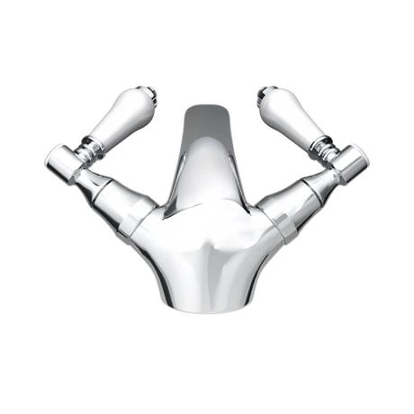 For a timeless British feel, opt for this Lancaster Traditional Mono Basin Mixer. Its graceful 117mm high body and white ceramic lever handles are inspired by Edwardian and Victorian designs. The handles of this basin mixer tap make it easy to get your preferred temperature, too, even if you only have one hand free. Aiming for a chrome mixer tap with a slightly different look? Items in the Lancaster collection are also available with black lever handles.