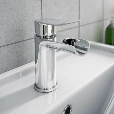 Simply washing your face can feel luxurious with the Luna Waterfall Basin Tap. Thanks to its distinctive open spout, this 153mm high tap produces an elegant cascade of water for a designer feel. Its slimline single lever handle is easy to turn, allowing precision control of flow and temperature. The set includes a click clack waste and is designed to be installed with ease. With its highly polished finish, the chrome mixer tap looks right at home in a contemporary interior. Pair it with the Bianco Modern Wall Hung Basin for a cohesive look.