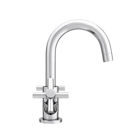 Make a statement in your sink area with this luxurious Modern Basin Mixer from Pablo. With a 230mm tall curving spout, this basin mixer tap won’t get in the way when you’re washing your face or brushing your teeth. Its cross head handles nod to industrial style, while the clean lines and glistening plated finish keep it feeling contemporary.