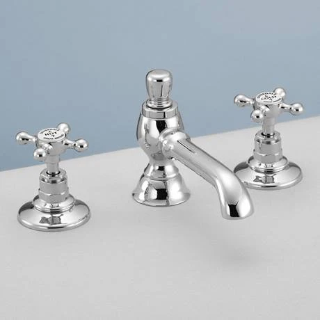 The stylish Victorian traditional 3 tap hole deck mounted basin tap, featuring a classic design which will bring a touch of sophistication to your bathroom. Manufactured from solid brass with a stunning hand polished chrome finish and engineered to the highest possible standards. Comes with a 5 year guarantee.
