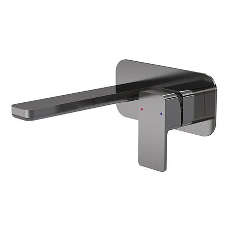 The Venice Cubo wall mounted basin mixer tap features a stunning contemporary angular design with a striking brushed gunmetal grey finish. Made from brass and incorporates ceramic disc technology providing smooth operation and long life.